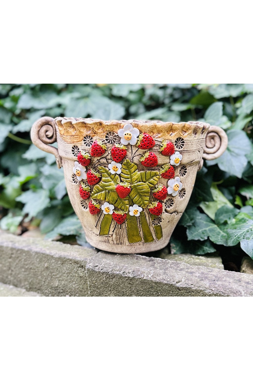 Mega velký květináč s uchy - jahody